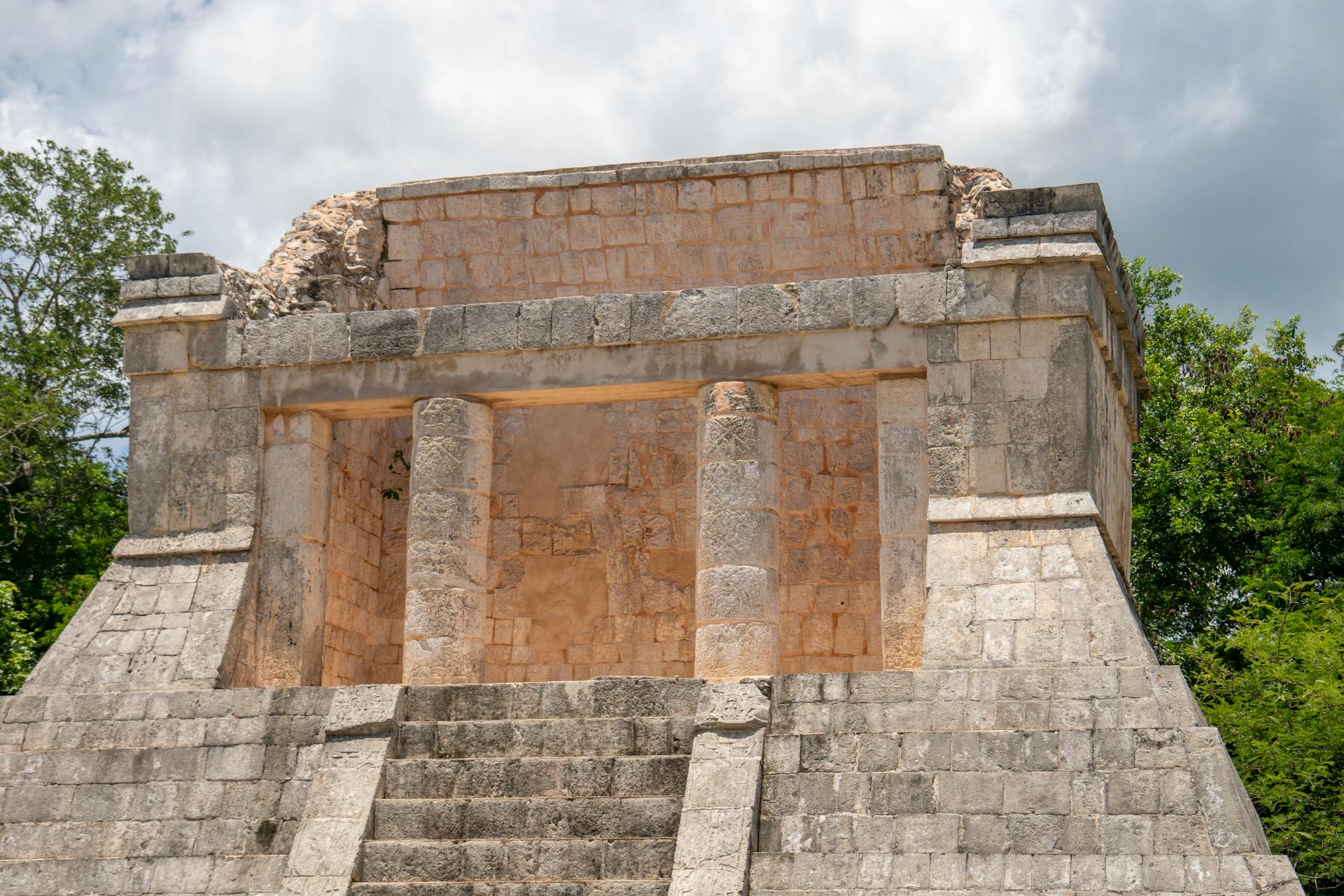 The building of Maya was a slow process and mostly with layered building. The first platform was made by constructors out of rubble and earth as a strong stable platform on which the essential buildings could be raised to avoid seasonal flooding and to give the necessary stability. On this they superimposed neatly cut stone facings, to make pyramids and temples in one above another, occasionally in several layers. The successive renovations or expansions frequently inspired by political or religious causes made each new layer expand or elevate the structure. The topmost layer was covered with lime plaster and embellished either with carvings or stucco mask, which were initially painted in bright colours in order to make the structures alive.​